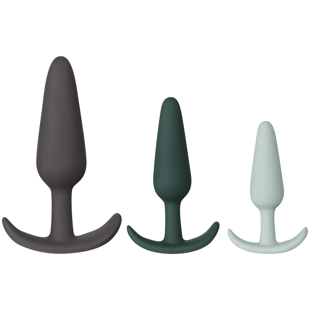 De 3 pluggen hebben allemaal een afgeronde kop waardoor je ze gemakkelijk in en uit kunt bewegen. Aan de basis bevindt zich een stevige stop om ervoor te zorgen dat de plug goed blijft zitten wanneer hij is ingebracht. Zo kun je volledig ontspannen en genieten van de intensiteit van het spel.