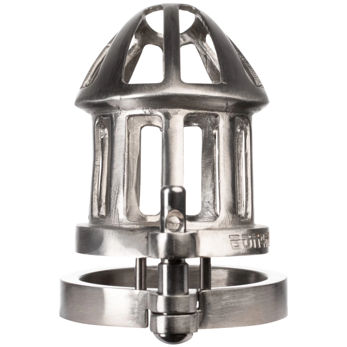 De kuisheidskooi is gemaakt van roestvrij staal en heeft een rauwe look en een gewicht van 136 g., wat een extra kinky dimensie aan je spel toevoegt. Er zit een hangslot met sleutel bij, zodat je je lot aan je partner kunt overdragen.