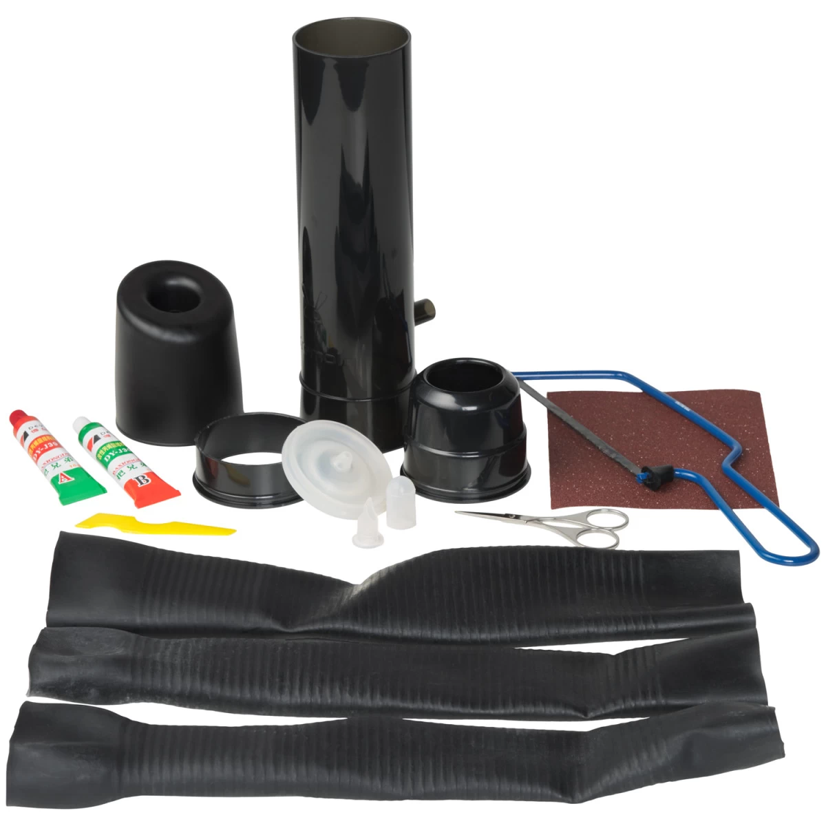 Het bevat drie verschillende maten sleeves, een extra cilinder met afmetingen en accessoires, en al het gereedschap dat je nodig hebt. Het enige wat je verder nog nodig hebt, zijn een paar stevige handen.