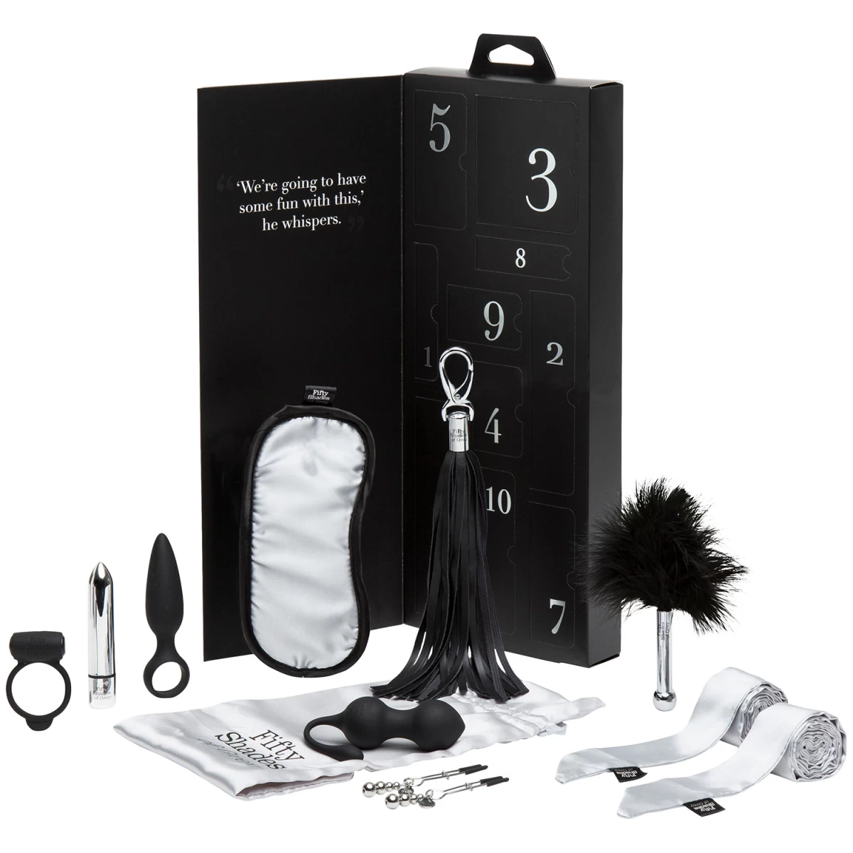 Maak je klaar voor 10 geweldige dagen vol erotiek met de Pleasure Overload-set voor stelletjes van Fifty Shades of Grey.
