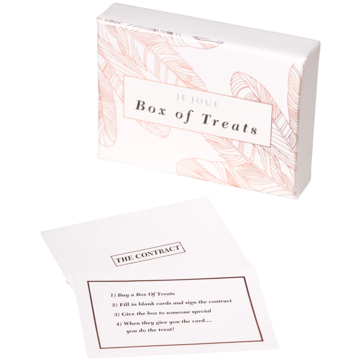 Neem je schatje mee op je wellness-reis met de massagekaars, en laat de zoete geur van jasmijn en lelie jullie lichamen sensueel strelen. Het kaartspel Box of Treats herinnert je eraan om de kleine dingen te koesteren en ruimte te maken voor intieme momenten samen in je dagelijks leven.