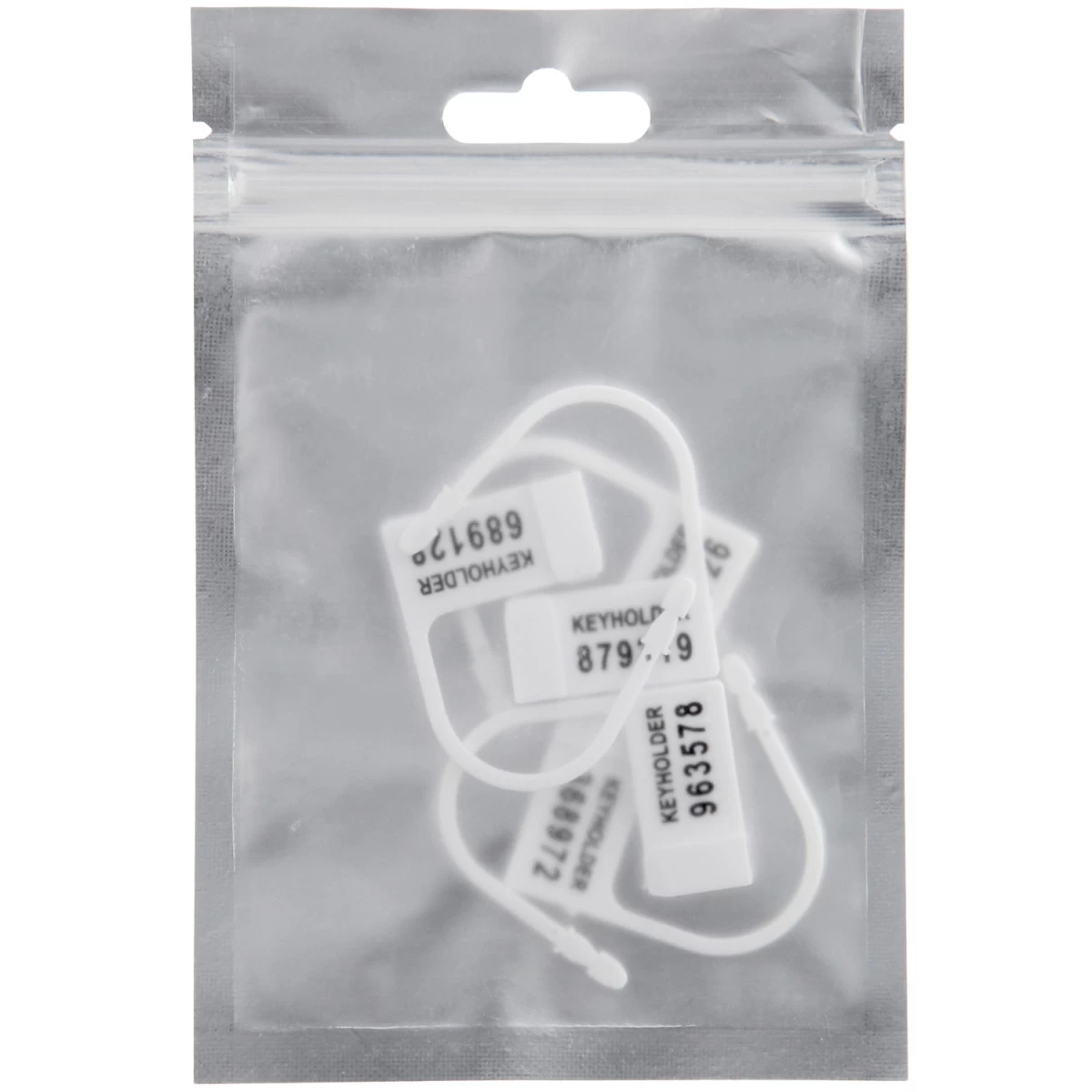 Elk plastic hangslot wordt geleverd met individuele serienummers, zodat de dominant kan controleren of het hangslot verwijderd is.