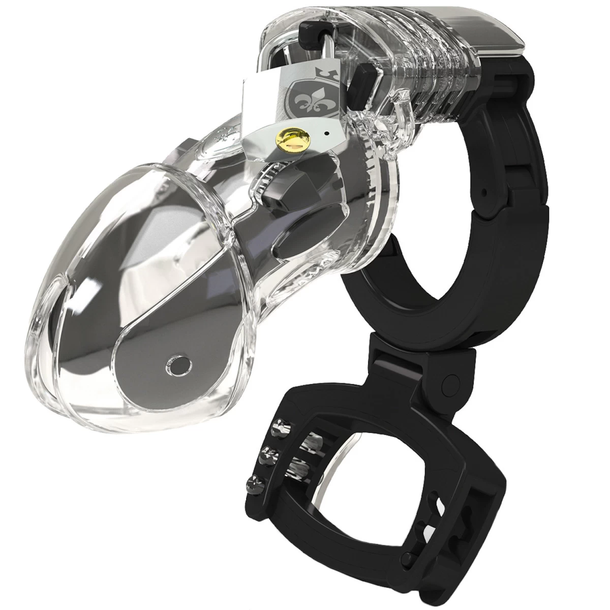 INBEGREPEN: 1 peniskooi met klem, 1 sluitstuk, 3 afstandhouders, 1 kabel voor elektrostimulatie, 1 metalen hangslot met 2 sleutels, 5 kunststof sloten, 10 naamplaatjes en 1 opbergkoffer.