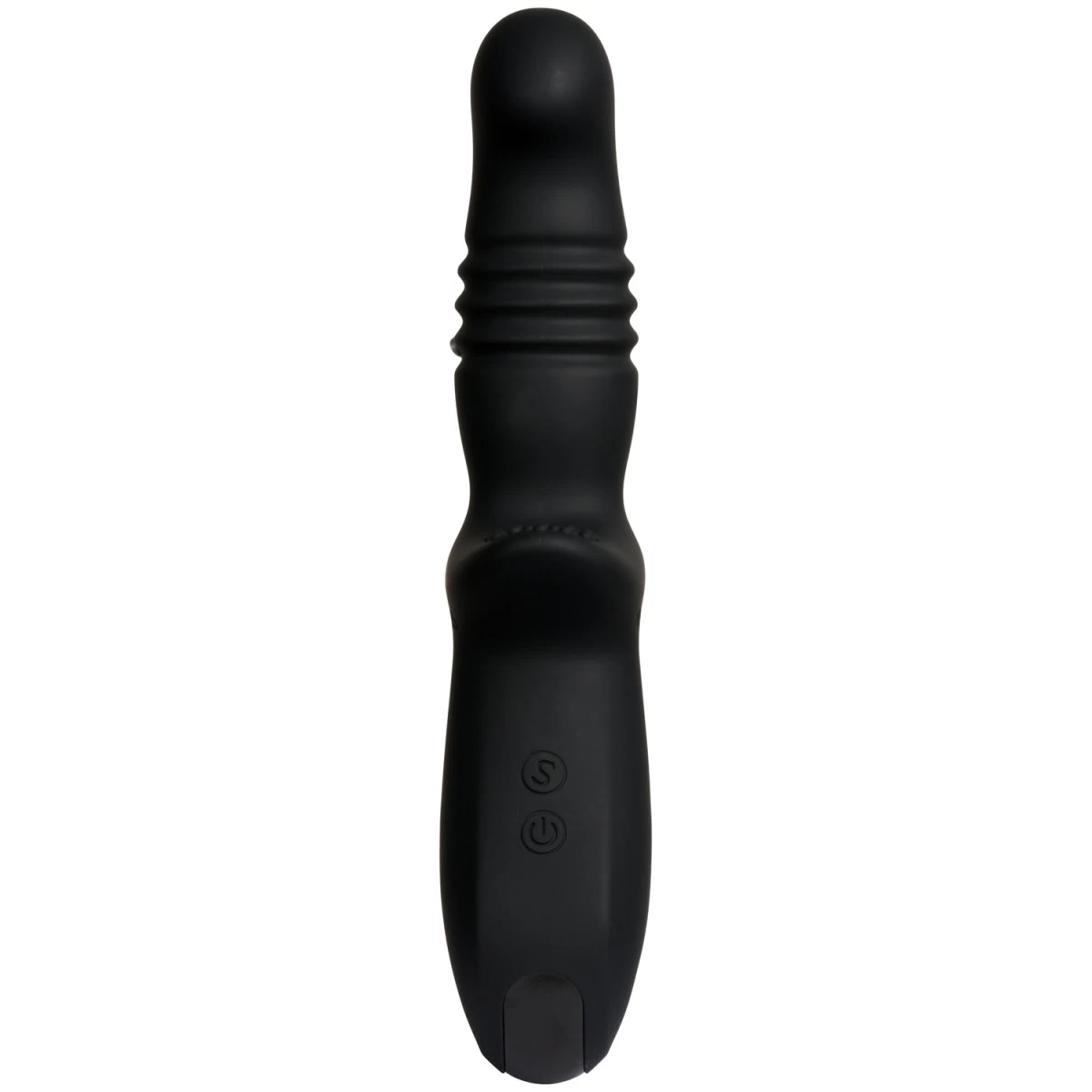Geniet van een stevige greep met het handvat op het strakke speeltje, of laat een partner het vasthouden om de weg naar je hoogtepunt te sturen, terwijl de stotende functie je P-spot met finesse stimuleert.