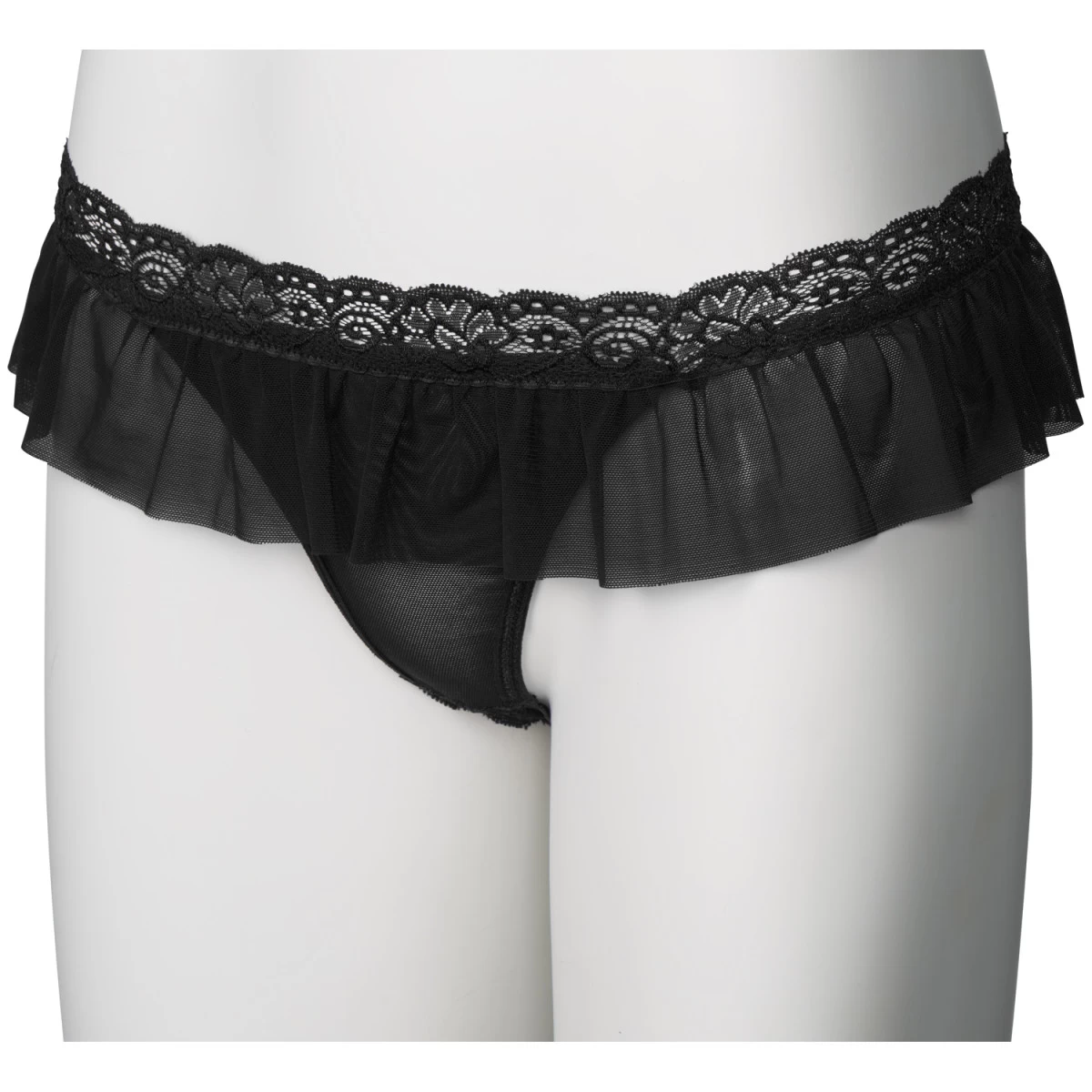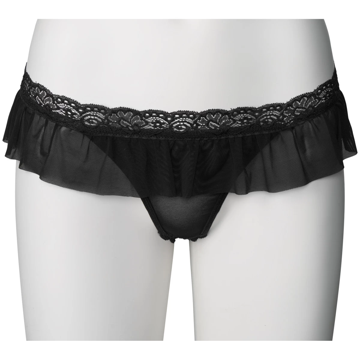 Ga voor subtiele verleiding in zwart en laat je prachtige rondingen uitkomen in Rosemary, het kanten slipje van NORTIE. Je bloten billen en de tulen franjes laten je speelse kant zien.