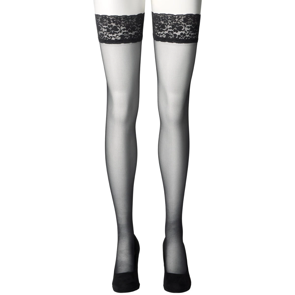 Schuif je benen in de zachte kousen en geniet van de dikke, elastische boord waarmee ze op hun plaats blijven – met of zonder jarretels. Het gebloemde kant smeekt om aangeraakt te worden, dus zeg tegen je partner dat hij of zij op zoek moet gaan naar de schoonheid tussen je benen.