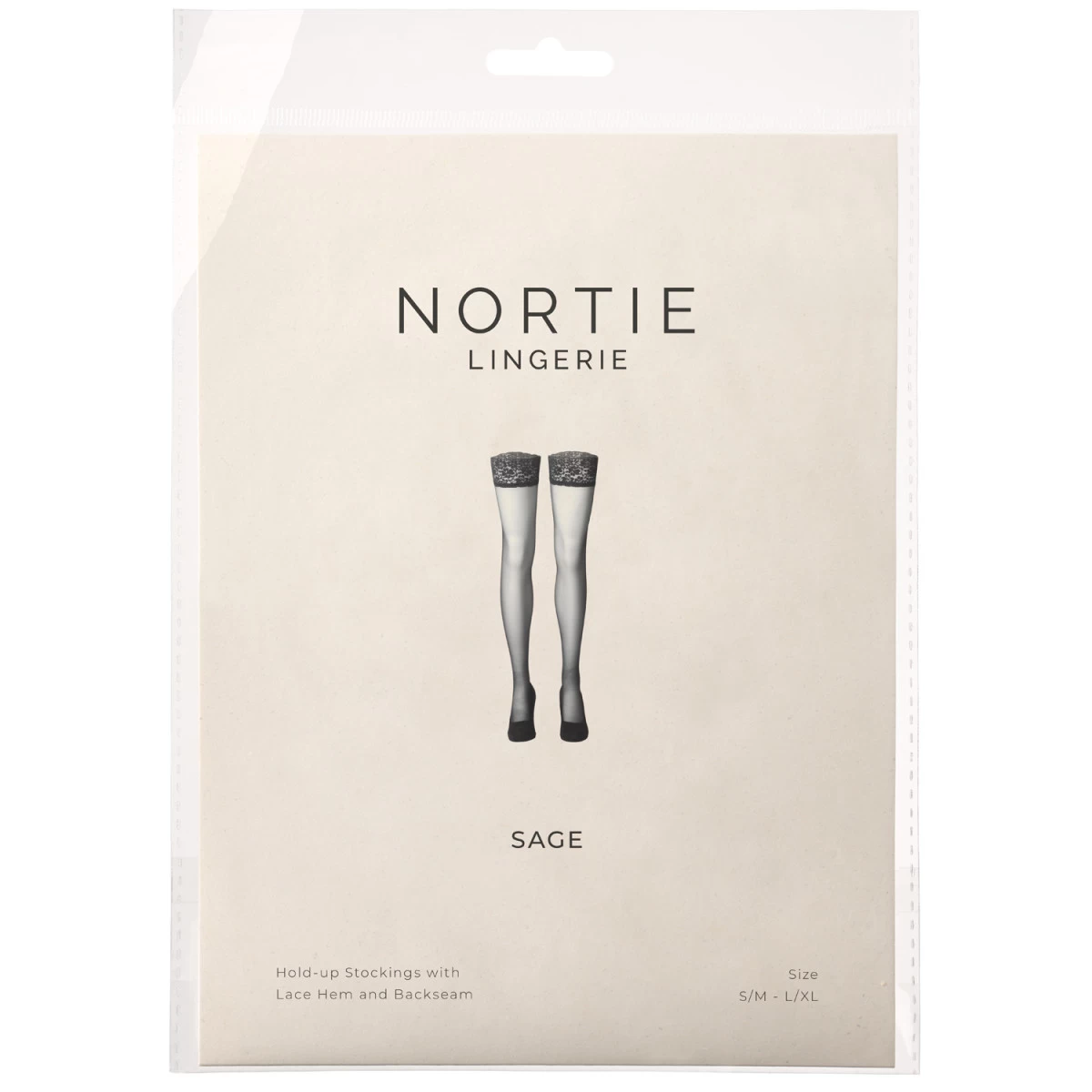 Elegant en soepel, de Sage hold-up kousen van NORTIE hebben een kanten zoom en een naad aan de achterkant. De perfecte kousen om wat vintage flair toe te voegen aan jouw dagelijkse jurkjes, of after-hours lingerie setjes.
