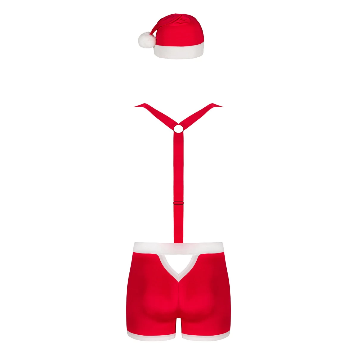 De bretels lopen over de schouders. Pas de lengte ervan aan zodat het perfect past. Maak de look af met de kerstmuts en je partner zal Santa Baby smeken om zich vanavond door de schoorsteen te haasten!