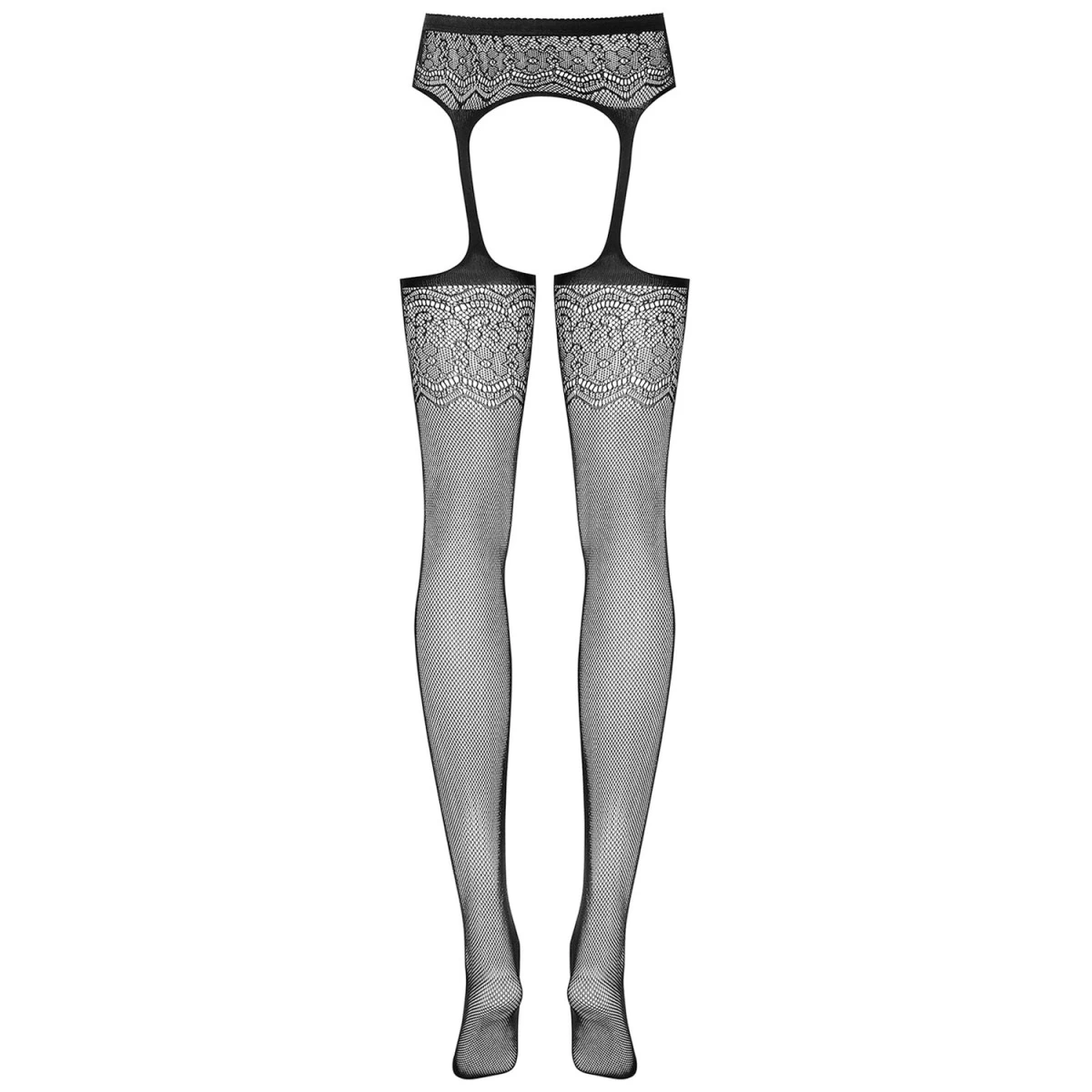 Geef een erotische draai aan elke outfit met deze netkousen met jarretels van Obsessive. De set combineert de jarretelgordel en kousen in één stuk en maakt je benen het middelpunt van de belangstelling in verleidelijk visnetmateriaal.