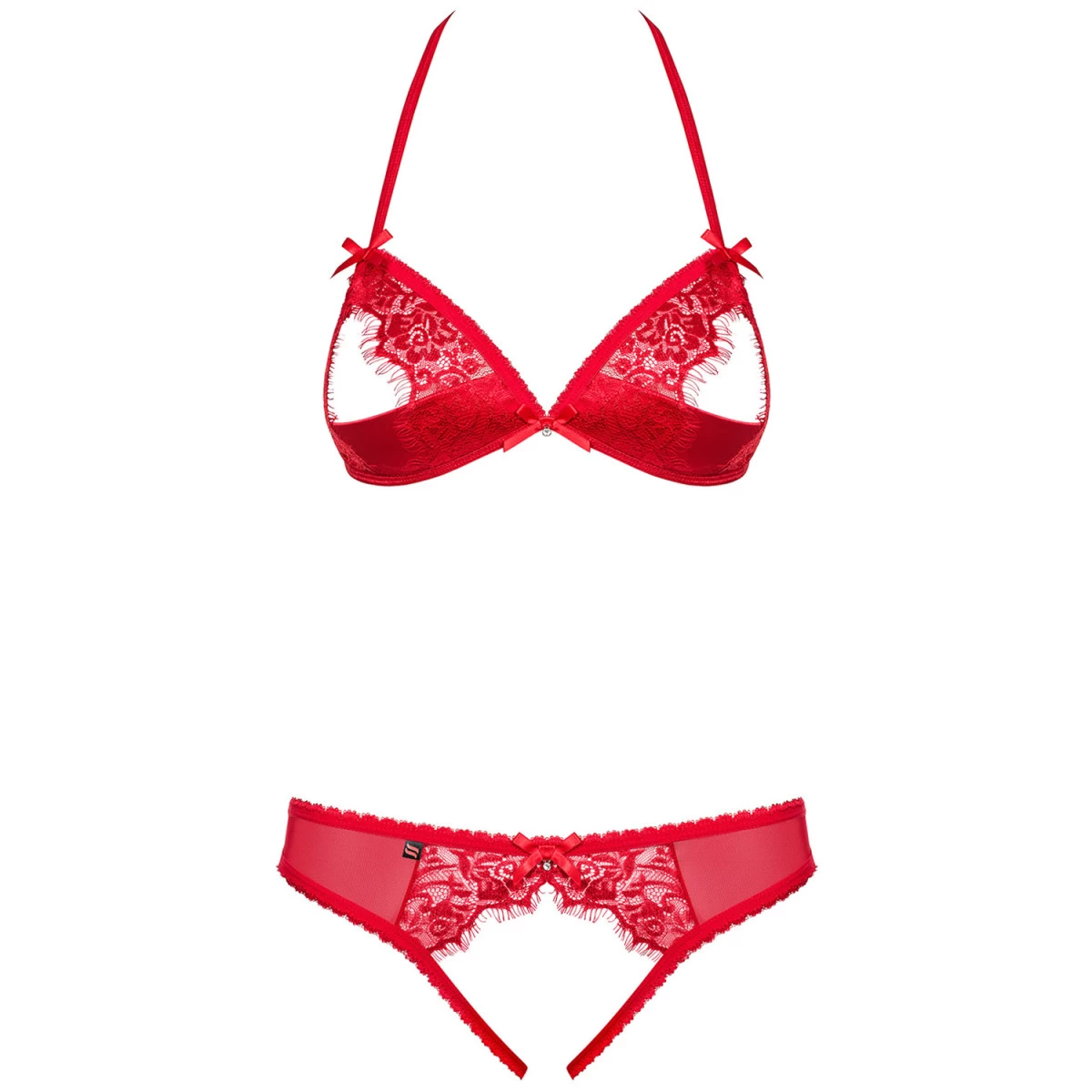 Geef je helemaal bloot in dit verrukkelijk schattige Obsessive setje, dat je het gevoel geeft een verleidelijke godin te zijn met de gevormde bh en kruisloze string.