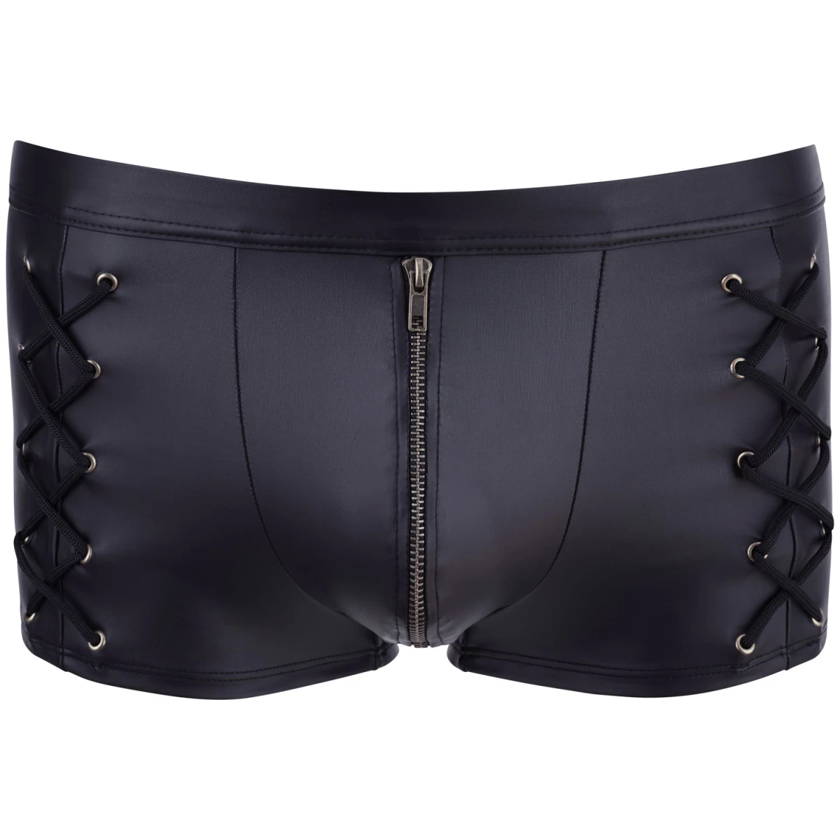 De boxershort voelt zacht en soepel aan en het materiaal heeft een lichte rek, dus het zaakje wordt met zorg ingepakt. De shorts zijn voorzien van decoratieve rijgveters op de heupen en hebben een functionele ritssluiting aan de voorkant voor een sexy onthulling en gemakkelijke toegang. De rits is gevoerd met een beschermlaag om vasthaken te voorkomen.