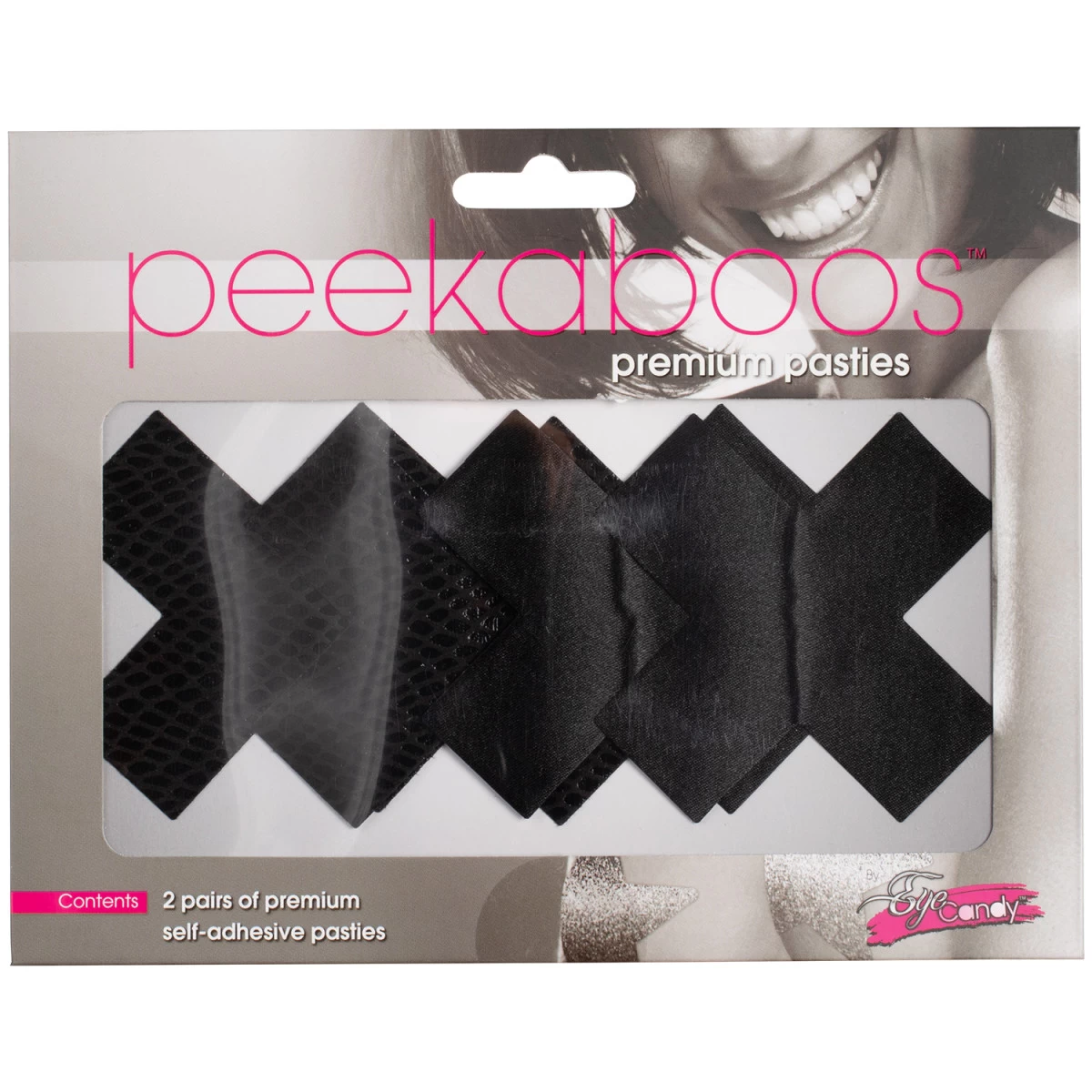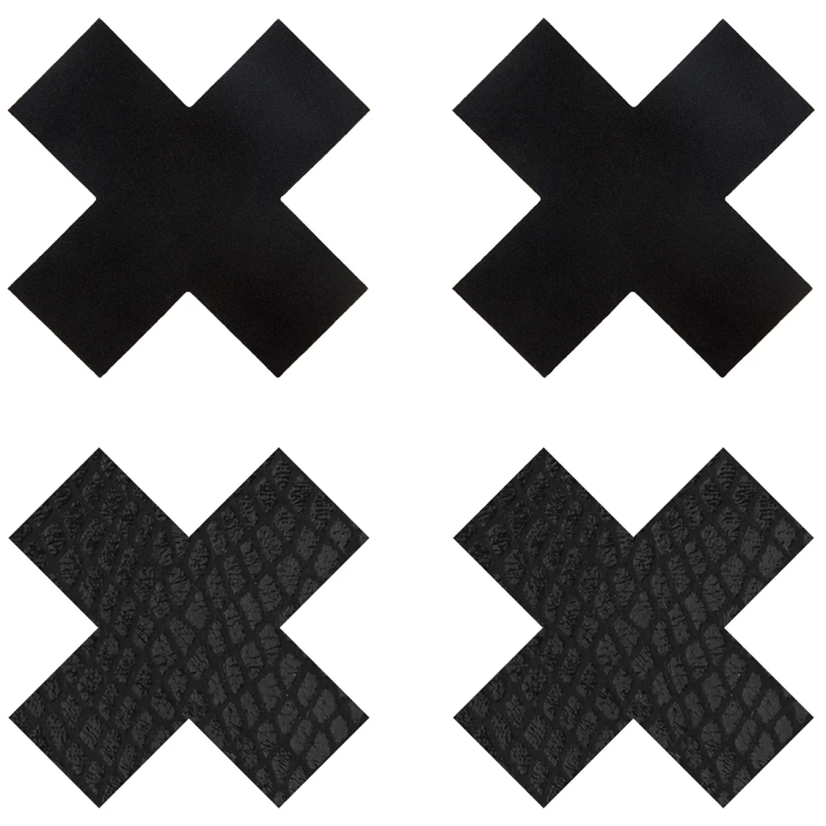 Deze kinky zwarte kruisjes zijn zelfklevend, waardoor ze gemakkelijk over de tepels te plaatsen zijn.