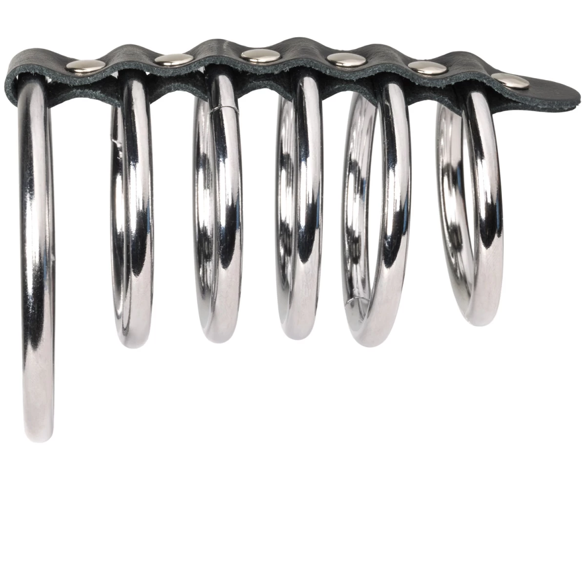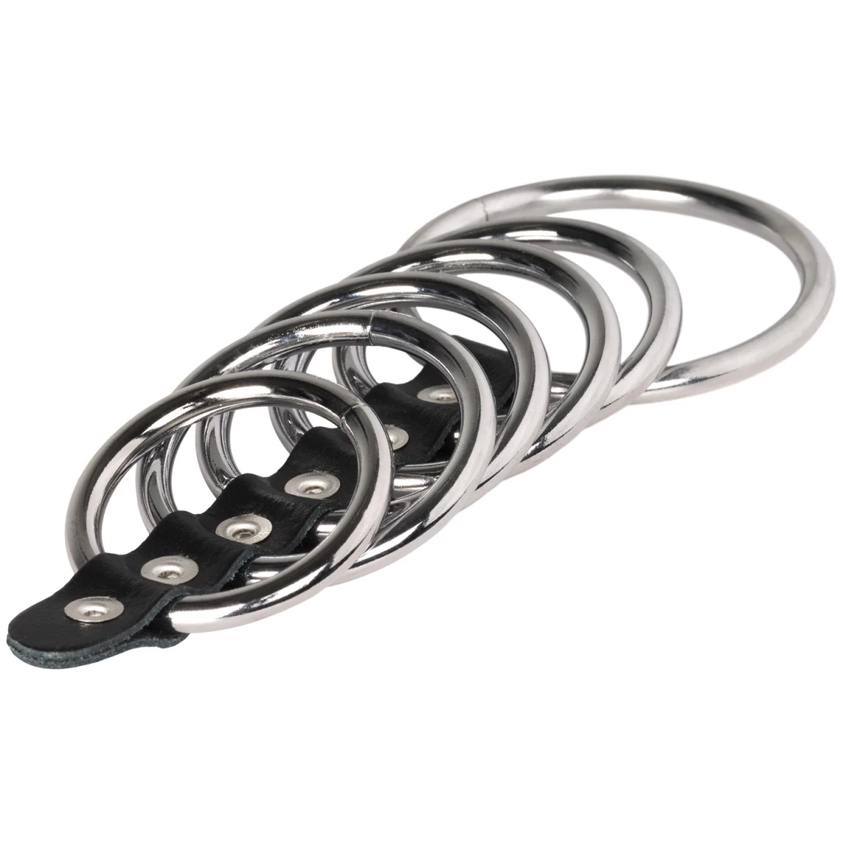 Straal erotiek uit en til je spel met penisringen naar een hoger niveau met de Rimba metalen penisringen-koker met balring. De zes ringen bieden een stevige grip rond je penis en ballen en zijn verkrijgbaar in drie verschillende maten om je keiharde lid te verfraaien voor fetisj-evenementen en privéfeestjes in de slaapkamer.