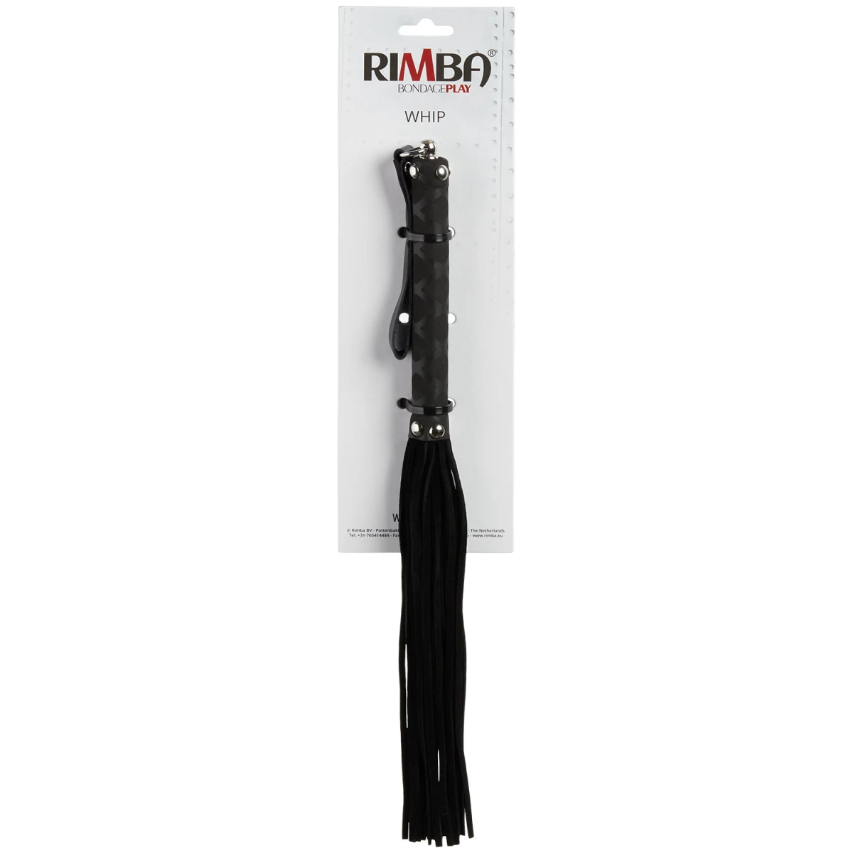 De Rimba Suede Flogger Whip heeft een stevige handgreep met een goede grip. Aan het uiteinde van de handgreep zit een band die om de pols gewikkeld kan worden.