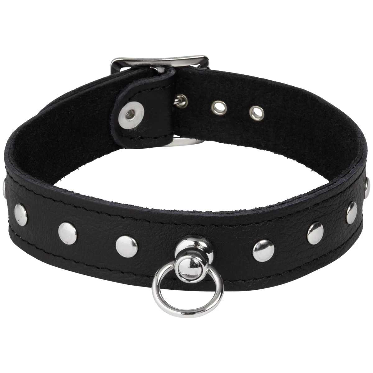 De verstelbare leren halsband van Rimba is een ideaal voor kinky dominantiespel. De halsband is 2 mm. dik en 2,4 cm. breed. Het is gemaakt van zwart leer en heeft een zachte achterkant, waardoor hij erg prettig draagt.