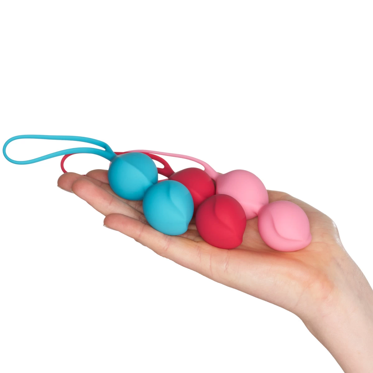 Begin met de lichtste van de drie ballen en werk je geleidelijk door de verschillende gewichtsklassen terwijl je zowel je kracht als controle versterkt. De ballen hebben een glad oppervlak dat het inbrengen gemakkelijk en discreet maakt. We raden aan om samen met het product een goed glijmiddel op waterbasis te gebruiken.