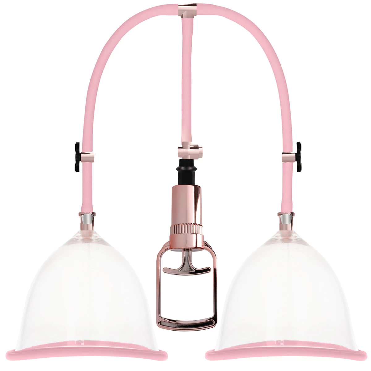 De cups zijn er in twee verschillende maten voor een perfecte pasvorm. De slang is gemaakt van mooie roze siliconen, terwijl de handpomp is gemaakt van ABS-kunststof met een roze-gouden ontwerp.
