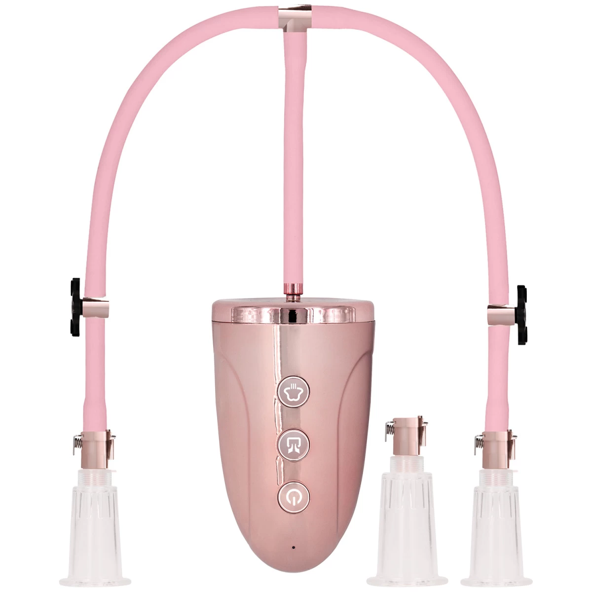 Sluit het motortje aan op de middelste arm van de slang en plaats vervolgens de 2 kleine zuignappen op de andere twee uiteinden. Plaats ze nu op de tepels en ervaar een geweldige en krachtige stimulatie.