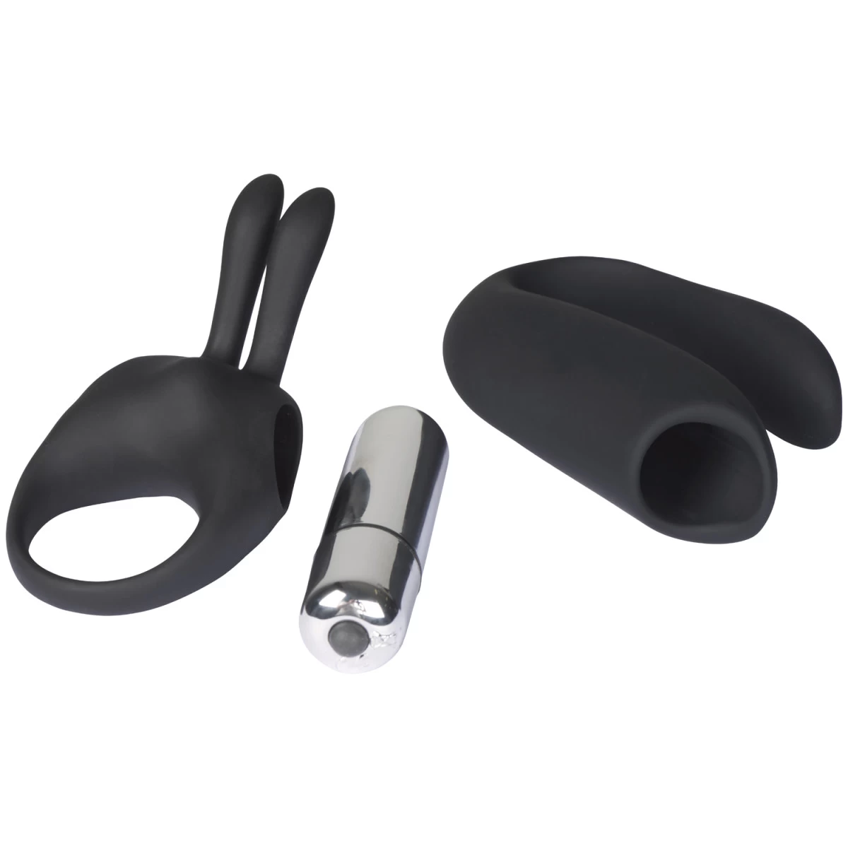 INHOUD: Sinful Couple’s Love siliconen sleeve, Sinful Rabbit cockring sleeve, Sinful Power Silver oplaadbare bullet vibrator.