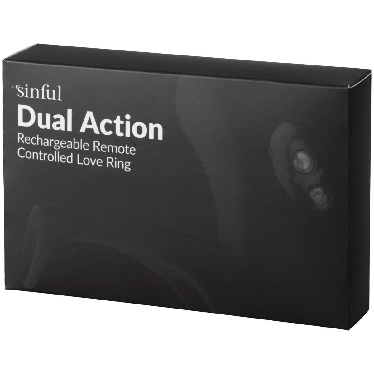 De Dual Action cockring van Sinful is een verrukkelijke pleaser die zich met twee grijpgrage ringen om je penis wikkelt. Geniet van langer durende erecties, terwijl je de zalige vibraties deelt met een gelukkige ontvanger.