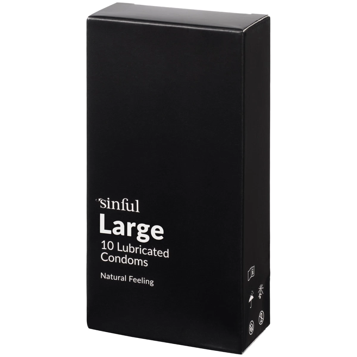 Geniet van elk moment van je sexy sessies in goede bescherming met de juiste maat dankzij de condooms van Sinful die gemaakt zijn voor degenen die een grotere pasvorm nodig hebben.