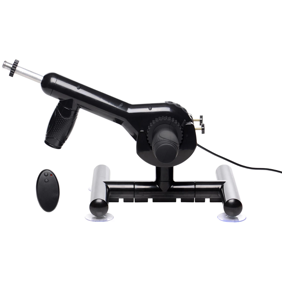 De vier afneembare zuignappen bevestigen de machine op elk stevig, vlak oppervlak voor handsfree festiviteiten. De kreunmachine is voorzien van bedieningselementen op het apparaat en een draadloze bediening, waardoor het perfect is voor zowel partnerplezier als solo-sessies.