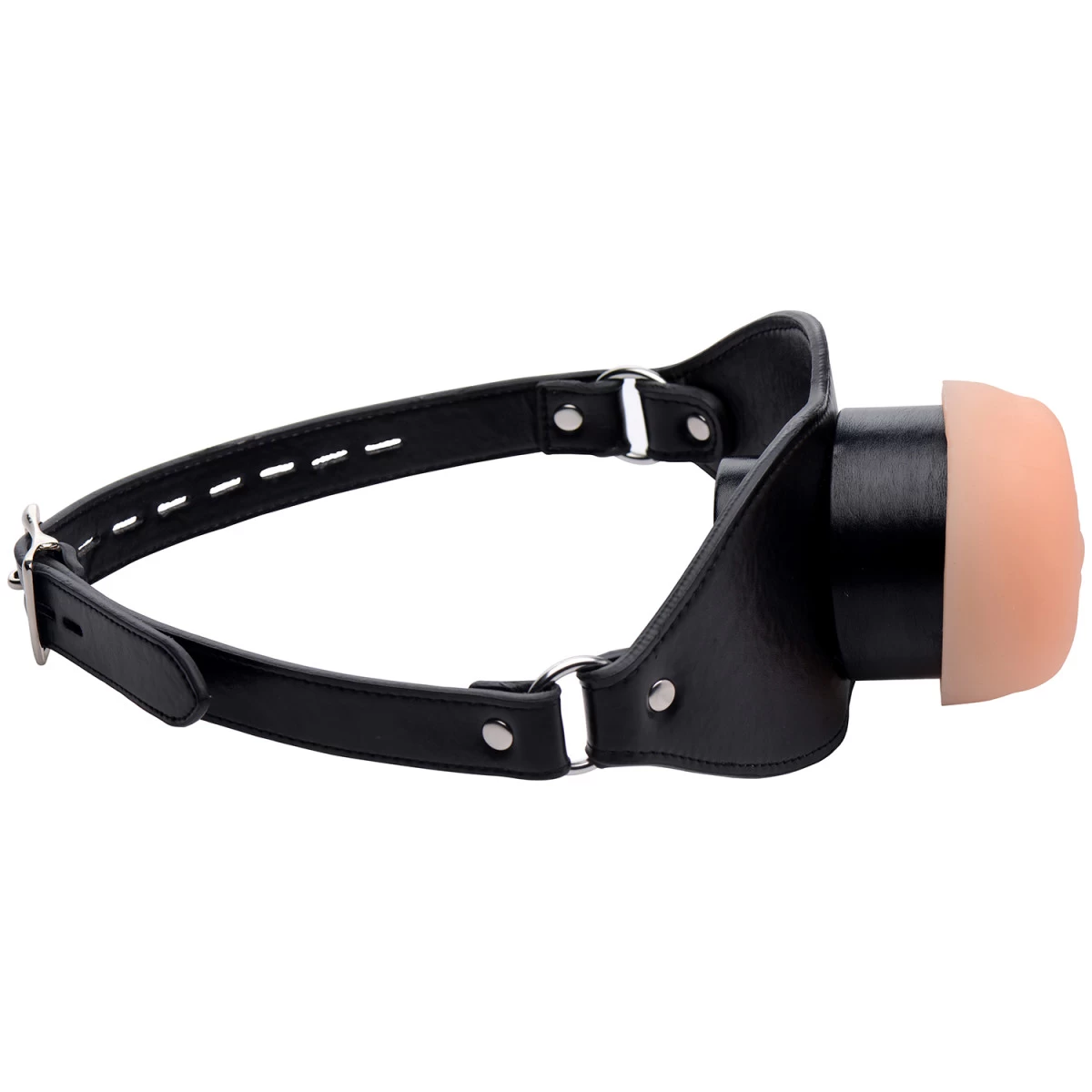 Met de kinky Pussy Face Gag verandert de mond van je partner in een strakke, gewillige vagina.