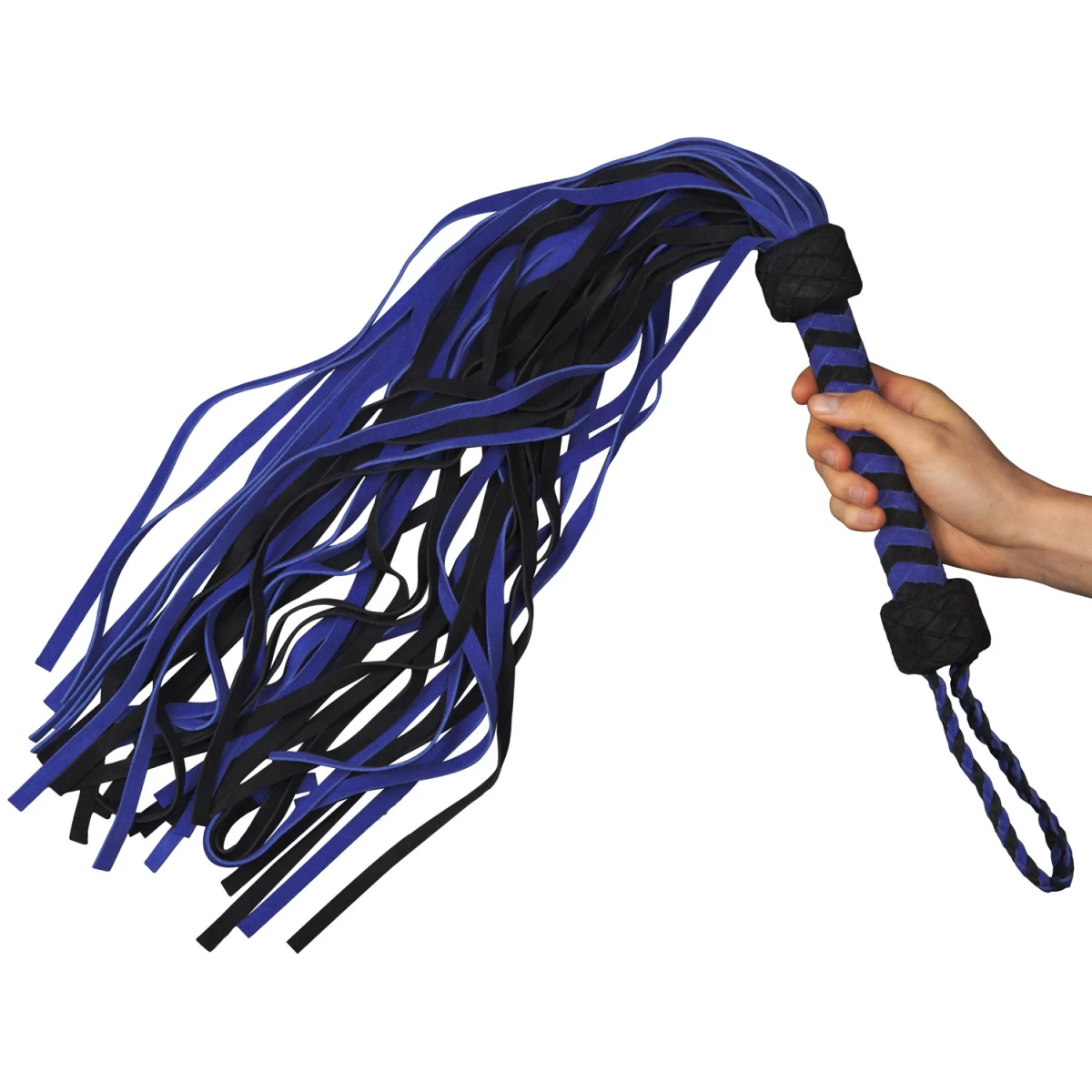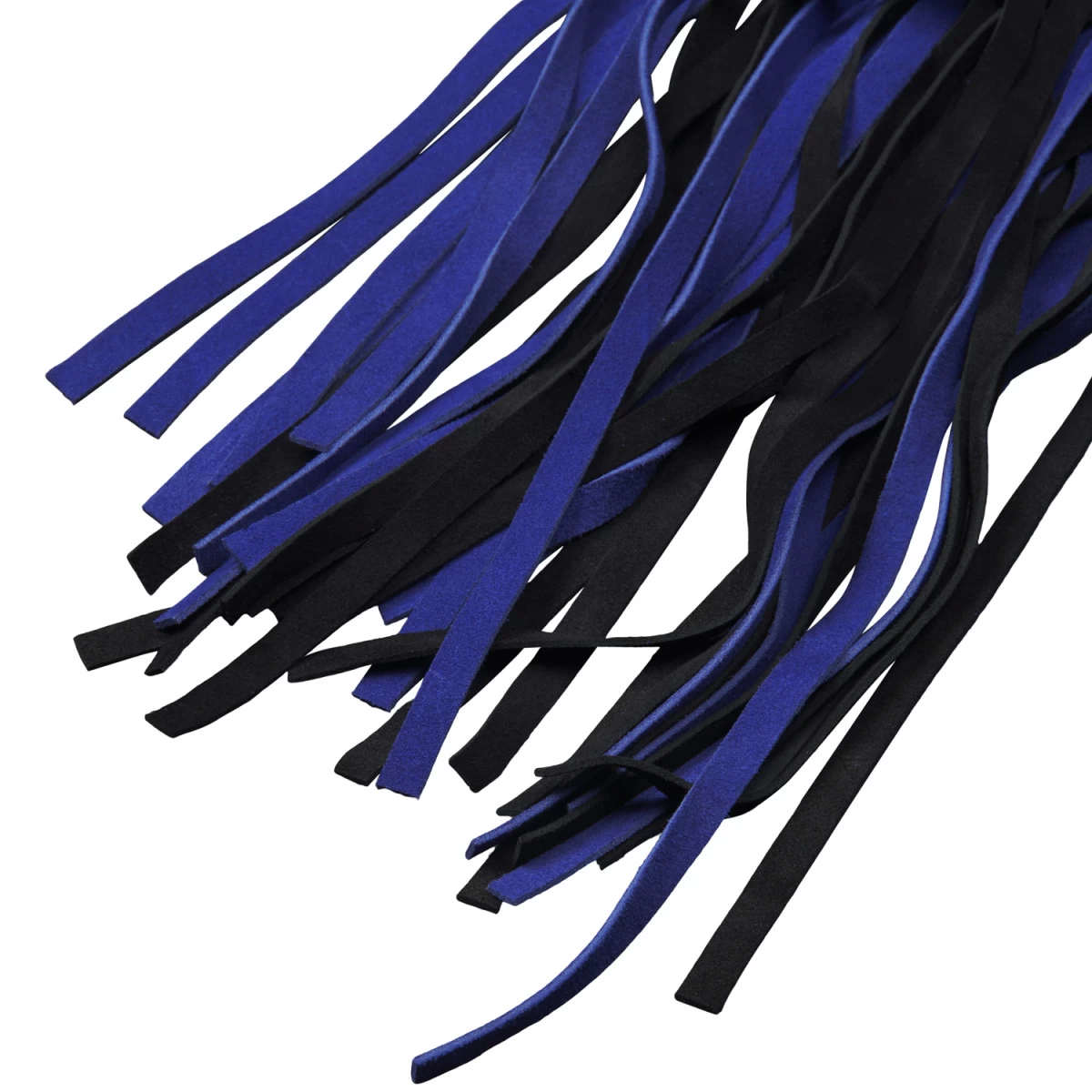 Geniet van een dramatische zwaai met de lange strengen van de Blue Suede flogger van Strict Leather. Functioneel en indrukwekkend, het speeltje heeft een dik handvat om grip te houden op enthousiaste sessies.